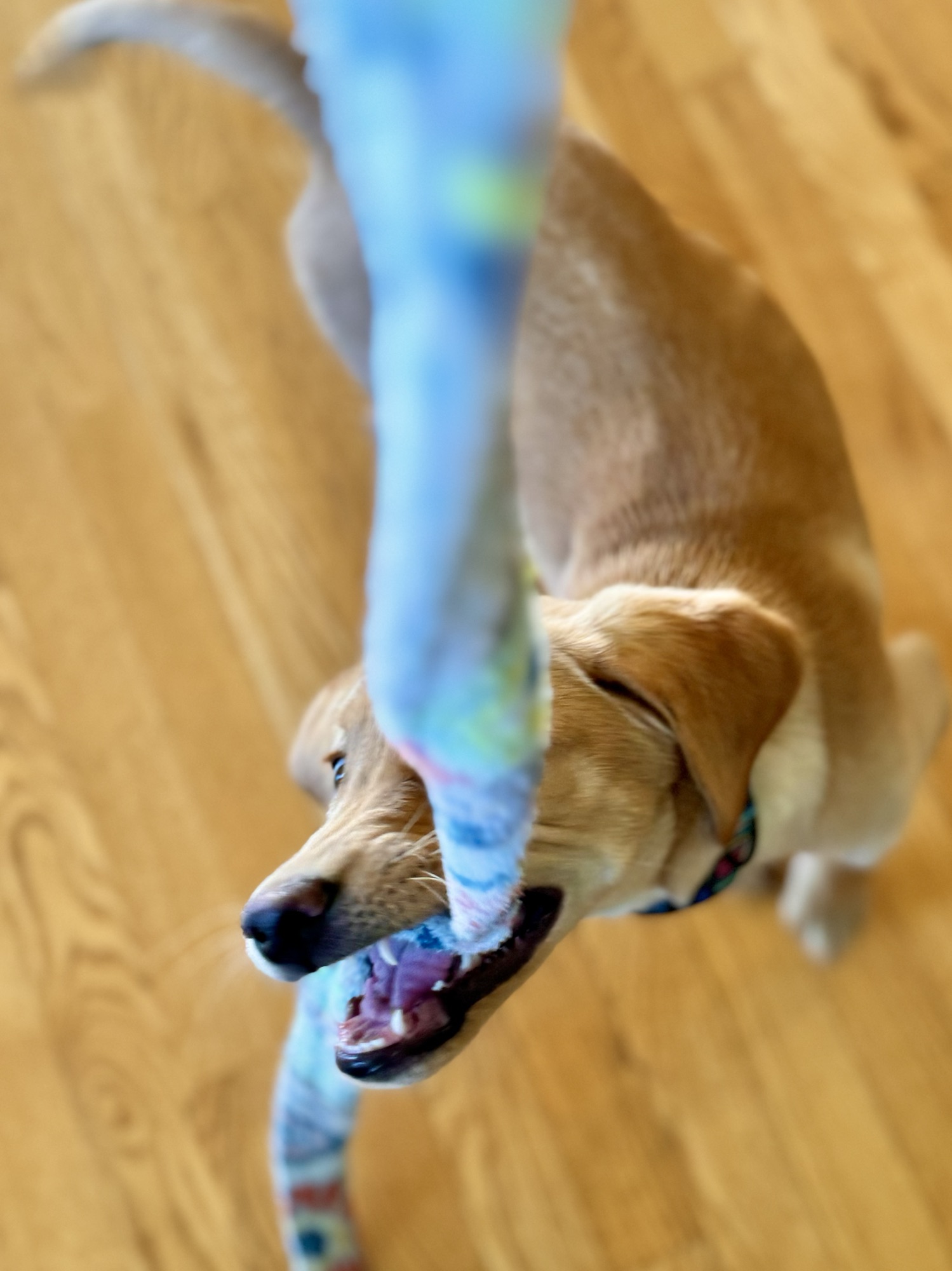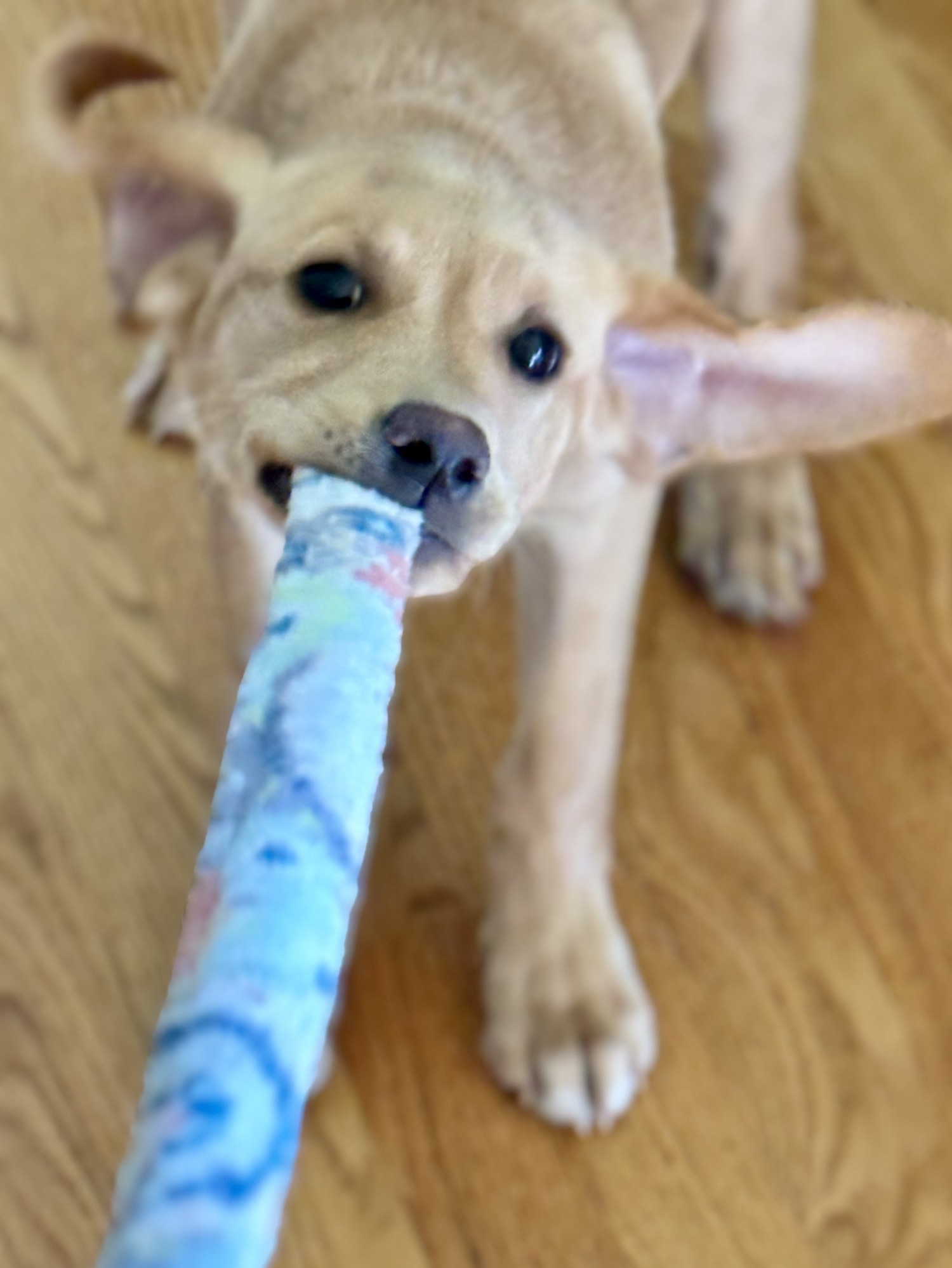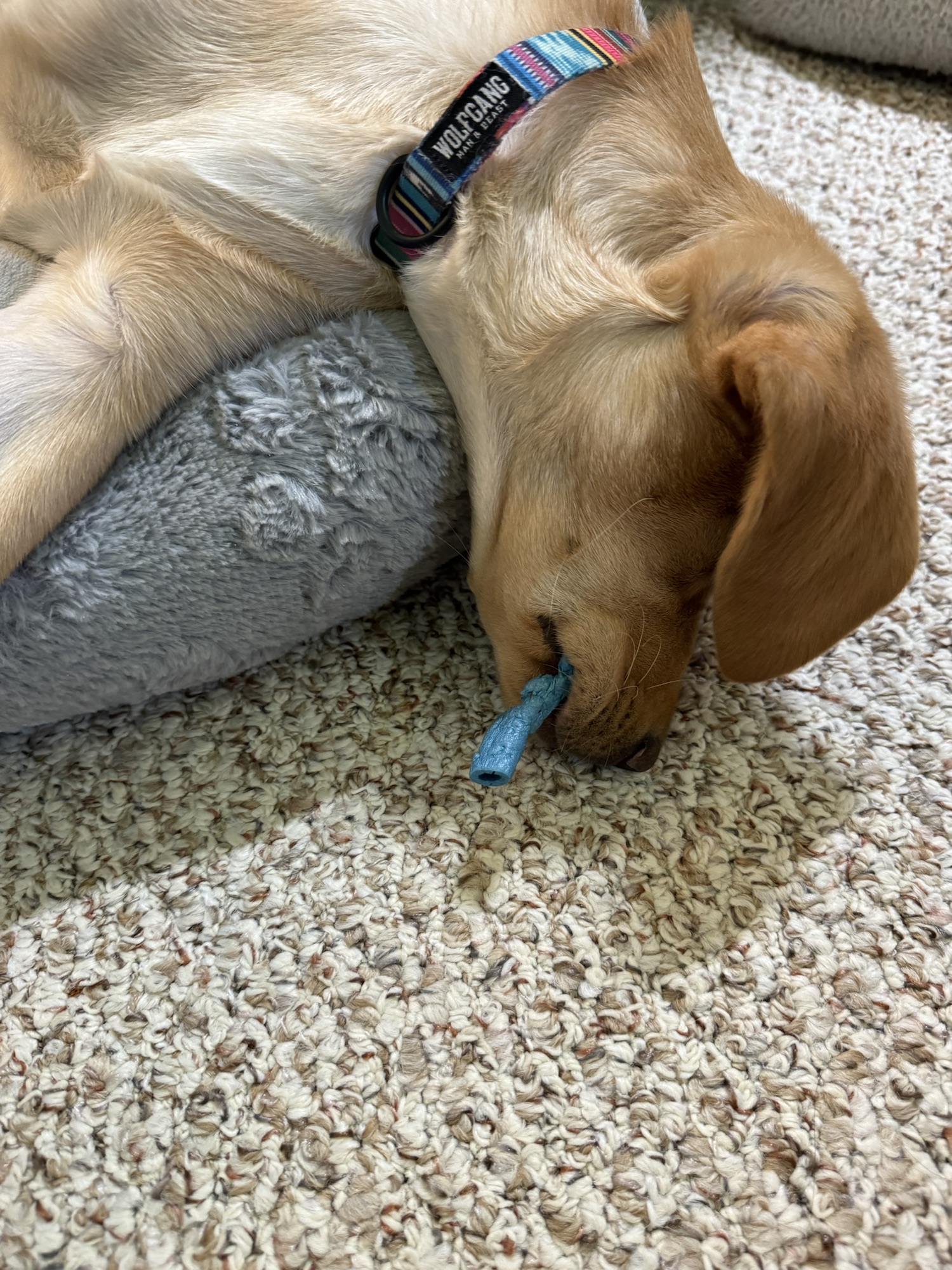 This one-dog wrecking crew has chewed up several shoes, ruined favorite hats, and turned my socks into confetti. And that’s just the casualty count for one day! Mom’s robe strings? Consider them chomped. The expensive leash we bought our “princess”? Completely shredded. Stuffed (innocent) animals? No survivors. She even tries to snack on Nerf bullets and dryer balls.