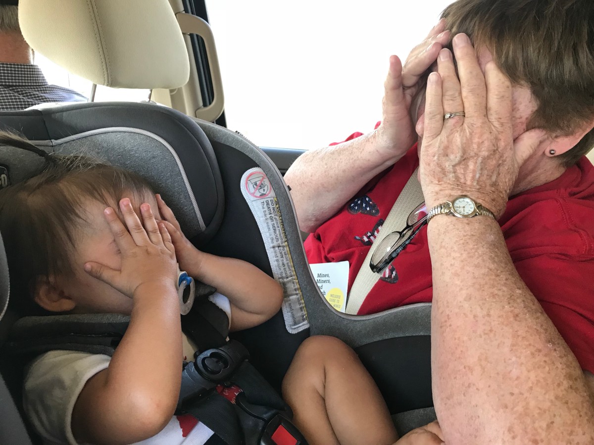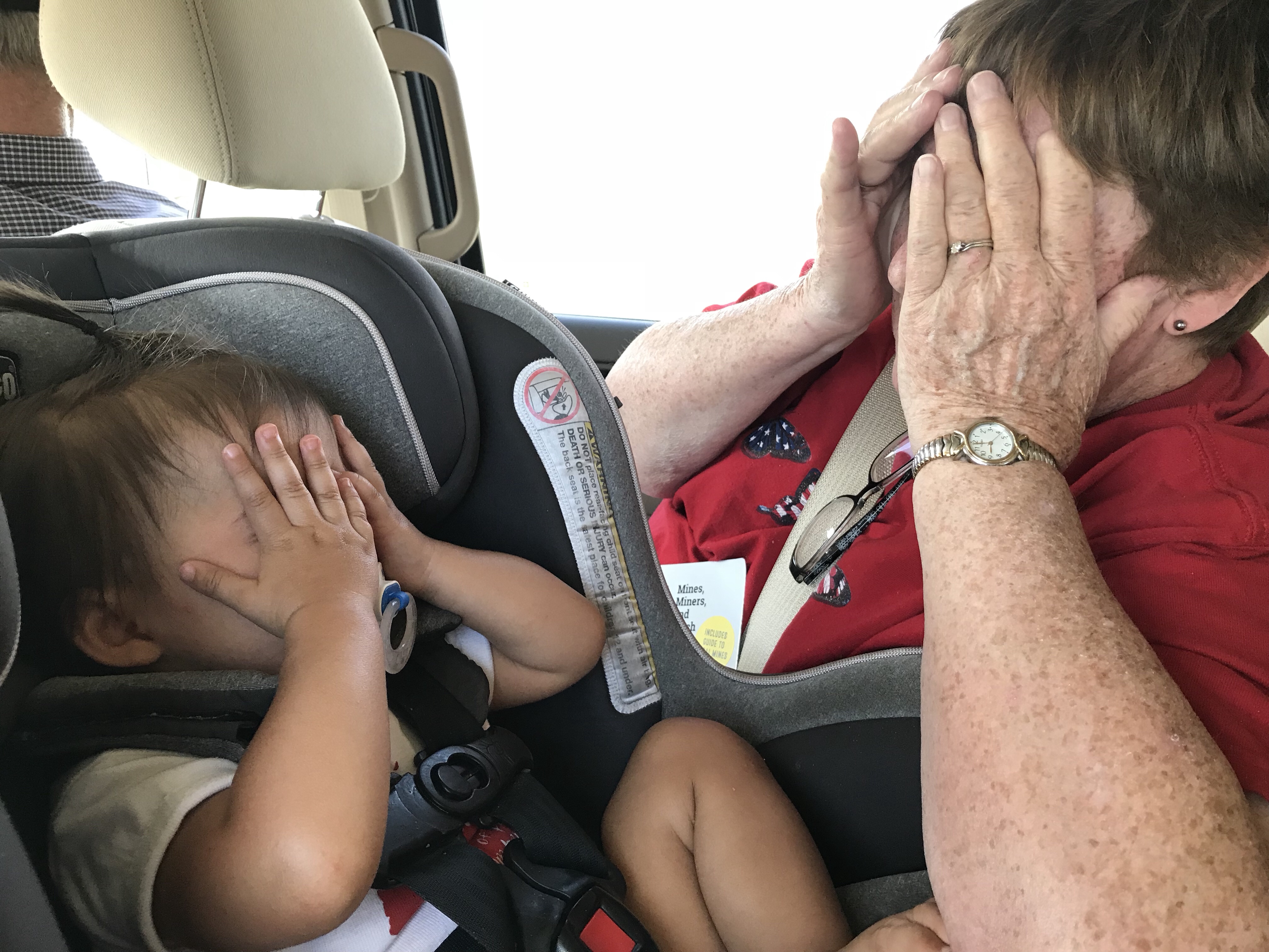 G playing peek-a-boo with Grandma