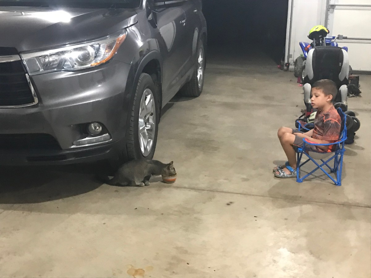 Making sure Charlie drinks his milk